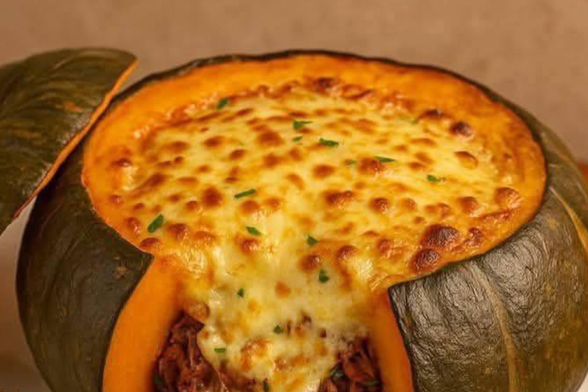 Abóbora Cabotiá Recheada com Carne Seca e Queijo